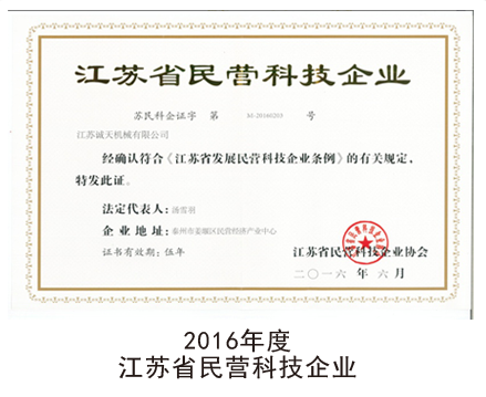 2016年度江蘇省名營(yíng)科技企業(yè)